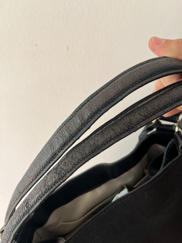 tiene leves desgastes en el cuero, principalmente en la manija.
